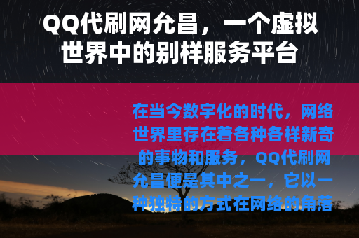 在当今数字化的时代,网络世界里存在着各种各样新奇的事物和服务,QQ代刷网允昌便是其中之一,它以一种独特的方式在网络的角落里悄然发展,为众多用户提供着别样的体验。