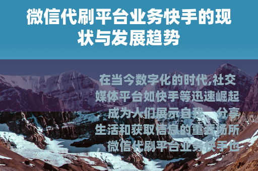 在当今数字化的时代,社交媒体平台如快手等迅速崛起,成为人们展示自我、分享生活和获取信息的重要场所,微信代刷平台业务快手也应运而生,呈现出独特的发展态势。