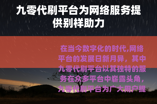 在当今数字化的时代,网络平台的发展日新月异,其中九零代刷平台以其独特的服务在众多平台中崭露头角,九零代刷平台为广大用户提供了一系列多样化的代刷服务,满足了不同用户在网络世界中的各种需求。
