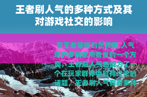 在王者荣耀的世界里,人气是许多玩家所看重的一个方面,王者刷人气也成为了一个在玩家群体中时有讨论的话题。
