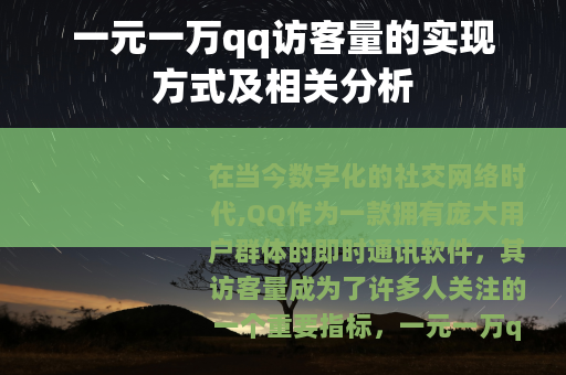 在当今数字化的社交网络时代,QQ作为一款拥有庞大用户群体的即时通讯软件,其访客量成为了许多人关注的一个重要指标,一元一万qq访客量的现象逐渐进入了人们的视野。