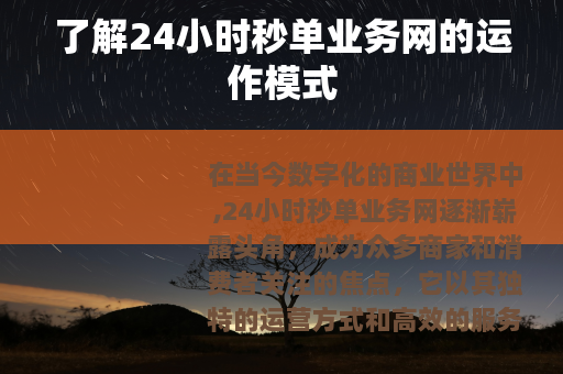 在当今数字化的商业世界中,24小时秒单业务网逐渐崭露头角,成为众多商家和消费者关注的焦点,它以其独特的运营方式和高效的服务,在市场中占据了一席之地。