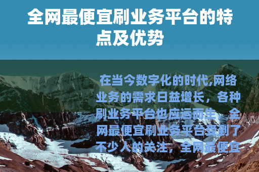 在当今数字化的时代,网络业务的需求日益增长,各种刷业务平台也应运而生,全网最便宜刷业务平台受到了不少人的关注。