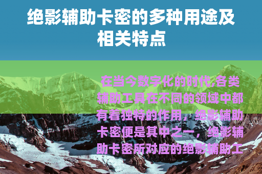在当今数字化的时代,各类辅助工具在不同的领域中都有着独特的作用,绝影辅助卡密便是其中之一。