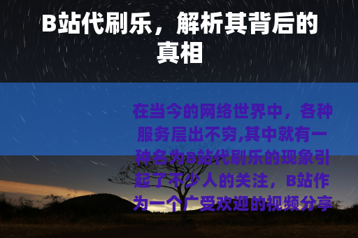 在当今的网络世界中,各种服务层出不穷,其中就有一种名为B站代刷乐的现象引起了不少人的关注。