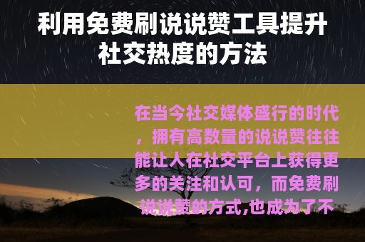在当今社交媒体盛行的时代,拥有高数量的说说赞往往能让人在社交平台上获得更多的关注和认可,而免费刷说说赞的方式,也成为了不少人想要尝试的途径。