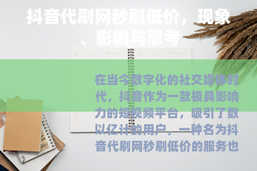 在当今数字化的社交媒体时代,抖音作为一款极具影响力的短视频平台,吸引了数以亿计的用户,一种名为抖音代刷网秒刷低价的服务也悄然兴起,在网络的角落里引发了一系列的讨论和关注。