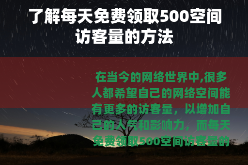 在当今的网络世界中,很多人都希望自己的网络空间能有更多的访客量,以增加自己的人气和影响力,而每天免费领取500空间访客量的机会,无疑是一个非常吸引人的事情。
