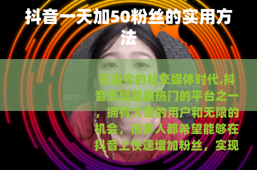 通过以上这些方法的综合运用,你就有很大的机会在抖音上一天增加50粉丝,逐步实现自己在抖音平台上的发展和成长,收获更多的关注和认可。