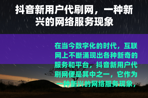 在当今数字化的时代,互联网上不断涌现出各种新奇的服务和平台,抖音新用户代刷网便是其中之一,它作为一种新兴的网络服务现象,在一定程度上满足了部分用户的特定需求,同时也引发了人们对于网络服务模式的新思考。