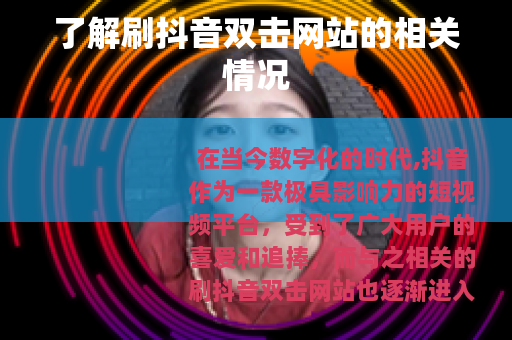 在当今数字化的时代,抖音作为一款极具影响力的短视频平台,受到了广大用户的喜爱和追捧,而与之相关的刷抖音双击网站也逐渐进入了人们的视野。