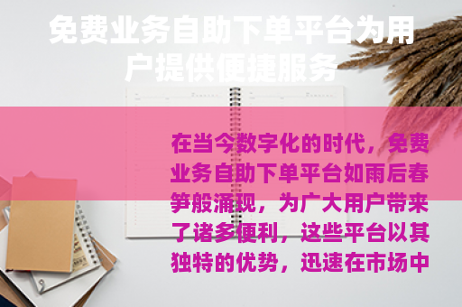 在当今数字化的时代,免费业务自助下单平台如雨后春笋般涌现,为广大用户带来了诸多便利,这些平台以其独特的优势,迅速在市场中占据了一席之地,成为了许多人在处理各类业务时的首选。