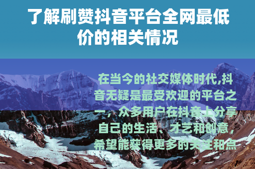 在当今的社交媒体时代,抖音无疑是最受欢迎的平台之一,众多用户在抖音上分享自己的生活、才艺和创意,希望能获得更多的关注和点赞,而在这个过程中,出现了一种所谓刷赞抖音平台全网最低价的现象,吸引了不少人的目光。