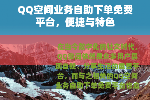 在当今数字化的社交时代,QQ空间依然是众多用户展现自我、分享生活的重要平台,而与之相关的QQ空间业务自助下单免费平台也应运而生,为用户提供了诸多便利和独特的体验。