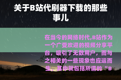 在当今的网络时代,B站作为一个广受欢迎的视频分享平台,吸引了无数用户,而与之相关的一些现象也应运而生,其中就包括所谓的“B站代刷器”。