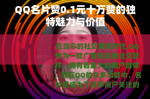 0.1元就能获得十万赞的方式,也为很多用户提供了一种低成本获取高人气的途径,在现实生活中,要获得广泛的认可和大量的关注往往需要付出很多努力和资源,而在QQ名片赞的世界里,只需要花费极少的成本,就能在短时间内实现人气的飙升,这对于那些想要在虚拟社交世界中获得一定地位,但又缺乏足够时间和精力去经营的用户来说,无疑是一个极具吸引力的选择。