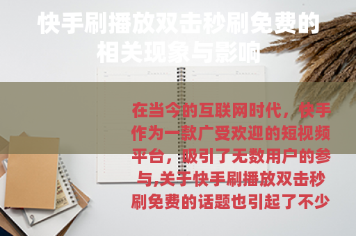 在当今的互联网时代,快手作为一款广受欢迎的短视频平台,吸引了无数用户的参与,关于快手刷播放双击秒刷免费的话题也引起了不少人的关注。