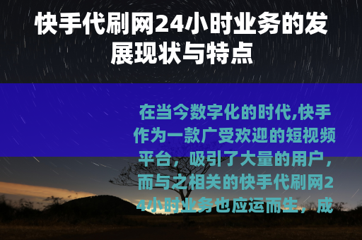 在当今数字化的时代,快手作为一款广受欢迎的短视频平台,吸引了大量的用户,而与之相关的快手代刷网24小时业务也应运而生,成为了一个备受关注的领域。