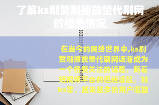 在当今的网络世界中,ks刷赞刷播放量代刷网逐渐成为一个备受关注的话题,随着短视频平台的迅速崛起,如ks等,越来越多的用户渴望在这些平台上获得更多的关注和流量,从而催生了代刷网这样的服务。