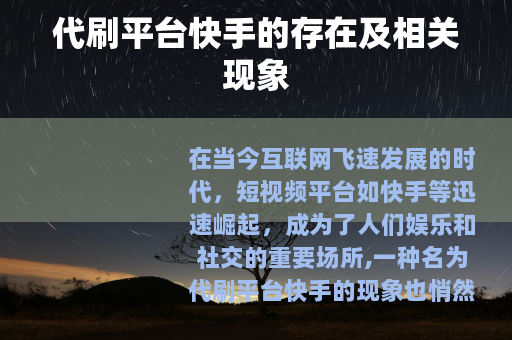 代刷平台快手是互联网发展过程中出现的一种特殊现象,它既有一定的市场需求基础,又存在着诸多的问题和挑战,我们需要以理性和客观的态度去看待它,既要认识到其可能带来的负面影响,也要从更宏观的角度思考如何引导和规范其发展,以促进互联网内容创作生态的健康和可持续发展,在未来,随着技术的不断进步和用户意识的提高,相信代刷平台快手这种现象会逐渐得到合理的规范和治理,快手平台也将更加健康、繁荣地发展下去,为广大用户提供一个更加公平、优质的创作和交流空间。