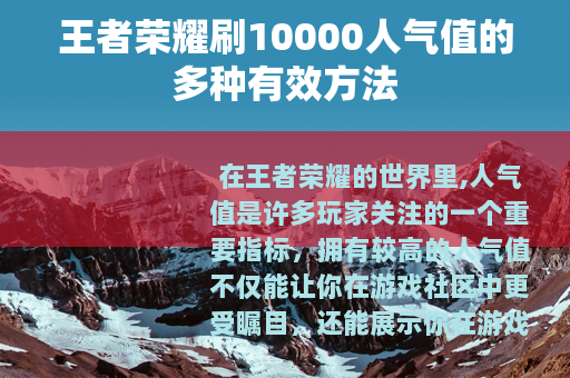 在王者荣耀的世界里,人气值是许多玩家关注的一个重要指标,拥有较高的人气值不仅能让你在游戏社区中更受瞩目,还能展示你在游戏中的活跃度和影响力,我们就来一起探讨一下如何在王者荣耀中刷到10000人气值的方法。