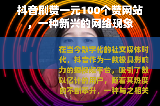 在当今数字化的社交媒体时代,抖音作为一款极具影响力的短视频平台,吸引了数以亿计的用户,随着其热度的不断攀升,一种与之相关的现象也逐渐兴起,那就是抖音刷赞一元100个赞的网站。