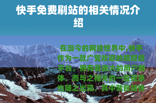 在当今的网络世界中,快手作为一款广受欢迎的短视频平台,拥有着庞大的用户群体,而与之相关的一些现象也随之出现,其中就包括快手免费刷站。