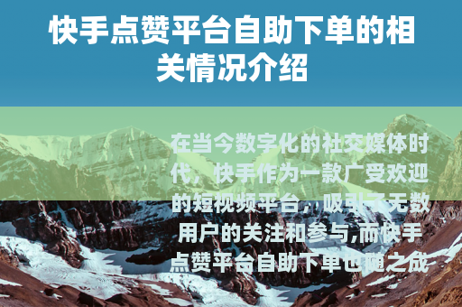 在当今数字化的社交媒体时代,快手作为一款广受欢迎的短视频平台,吸引了无数用户的关注和参与,而快手点赞平台自助下单也随之成为了一个热门话题。
