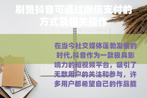 在当今社交媒体蓬勃发展的时代,抖音作为一款极具影响力的短视频平台,吸引了无数用户的关注和参与,许多用户都希望自己的作品能够获得更多的点赞,从而提高曝光度和影响力,而刷赞这种行为在一定程度上满足了部分用户的需求,其中通过微信支付来完成刷赞的操作也较为常见。