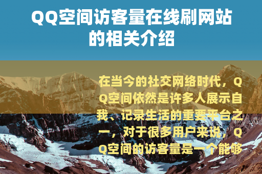 在当今的社交网络时代,QQ空间依然是许多人展示自我、记录生活的重要平台之一,对于很多用户来说,QQ空间的访客量是一个能够体现自己受欢迎程度和社交活跃度的重要指标,市场上出现了一些声称可以提供QQ空间访客量在线刷服务的网站。