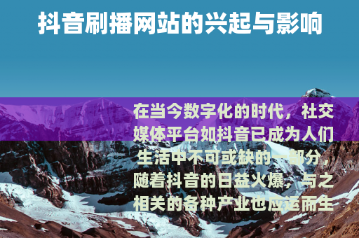 在当今数字化的时代,社交媒体平台如抖音已成为人们生活中不可或缺的一部分,随着抖音的日益火爆,与之相关的各种产业也应运而生,其中就包括抖音刷播网站。
