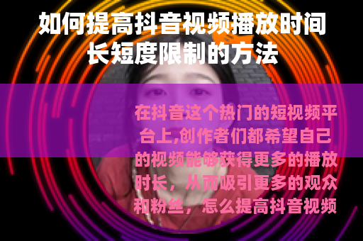 通过以上这些方法的综合运用,相信能够有效地提高抖音视频播放时间长短度限制,让你的视频在抖音上获得更多的关注和喜爱。