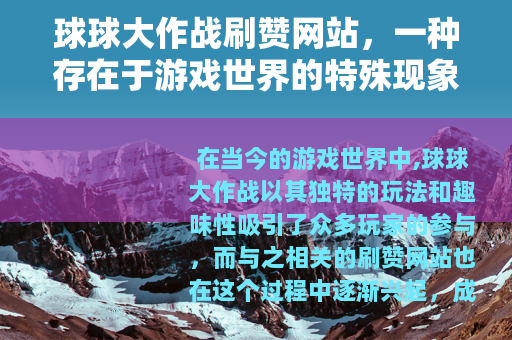 在当今的游戏世界中,球球大作战以其独特的玩法和趣味性吸引了众多玩家的参与,而与之相关的刷赞网站也在这个过程中逐渐兴起,成为了一个备受关注的话题。