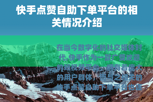 在当今数字化的社交媒体时代,快手作为一款广受欢迎的短视频平台,拥有着庞大的用户群体,而与之相关的快手点赞自助下单平台也逐渐进入了人们的视野。