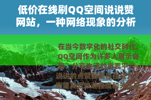 在当今数字化的社交时代,QQ空间作为许多人展示自我、分享生活的重要平台,说说的点赞数量往往成为了衡量其受欢迎程度和关注度的一个重要指标,而随之应运而生的,便是众多声称可以低价在线刷QQ空间说说赞的网站。