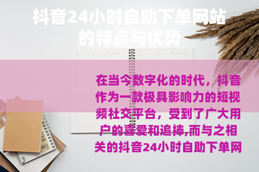 在当今数字化的时代,抖音作为一款极具影响力的短视频社交平台,受到了广大用户的喜爱和追捧,而与之相关的抖音24小时自助下单网站也逐渐走进了人们的视野。