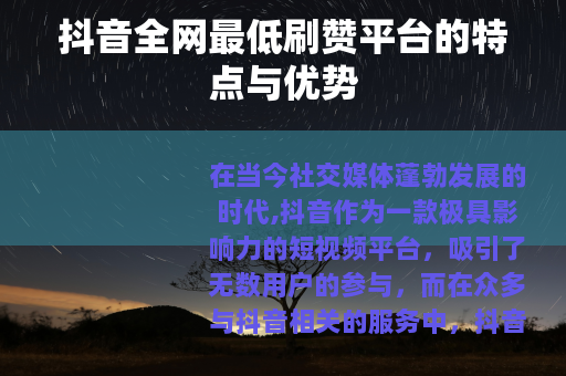 在当今社交媒体蓬勃发展的时代,抖音作为一款极具影响力的短视频平台,吸引了无数用户的参与,而在众多与抖音相关的服务中,抖音全网最低刷赞平台也逐渐进入了人们的视野。