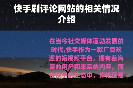 在当今社交媒体蓬勃发展的时代,快手作为一款广受欢迎的短视频平台,拥有着海量的用户和丰富的内容,而在快手的生态中,评论区是一个非常重要的互动区域,它不仅能够让用户之间更好地交流和分享想法,还能为创作者提供反馈和灵感,随着快手的影响力不断扩大,一些所谓的快手刷评论网站也应运而生。