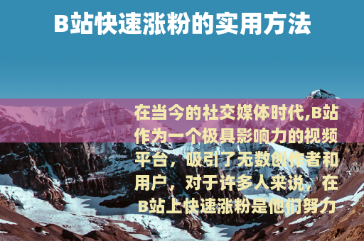 在当今的社交媒体时代,B站作为一个极具影响力的视频平台,吸引了无数创作者和用户,对于许多人来说,在B站上快速涨粉是他们努力追求的目标,如何在B站实现快速涨粉呢?以下是一些实用的方法。