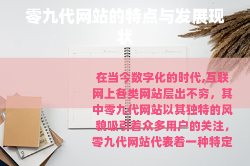 在当今数字化的时代,互联网上各类网站层出不穷,其中零九代网站以其独特的风貌吸引着众多用户的关注,零九代网站代表着一种特定阶段的网络发展成果,它在技术、功能以及用户体验等方面都有着自己的特点。