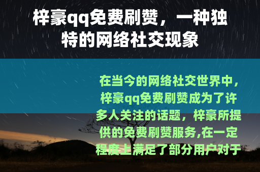 在当今的网络社交世界中,梓豪qq免费刷赞成为了许多人关注的话题,梓豪所提供的免费刷赞服务,在一定程度上满足了部分用户对于社交平台上点赞数量的追求。