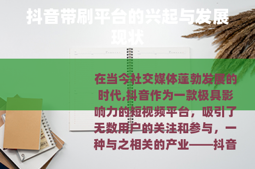 在当今社交媒体蓬勃发展的时代,抖音作为一款极具影响力的短视频平台,吸引了无数用户的关注和参与,一种与之相关的产业——抖音带刷平台也悄然兴起。