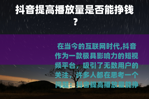 在当今的互联网时代,抖音作为一款极具影响力的短视频平台,吸引了无数用户的关注,许多人都在思考一个问题:抖音提高播放量能挣钱吗?