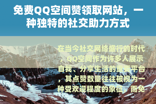 在当今社交网络盛行的时代,QQ空间作为许多人展示自我、分享生活的重要平台,其点赞数量往往被视为一种受欢迎程度的象征,而免费QQ空间赞领取网站的出现,为广大用户提供了一种快速增加空间赞数的途径,受到了不少人的关注和使用。