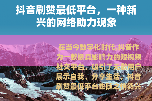 在当今数字化时代,抖音作为一款极具影响力的短视频社交平台,吸引了无数用户展示自我、分享生活,抖音刷赞最低平台也随之悄然兴起,成为了众多抖音用户关注的一个热点话题。
