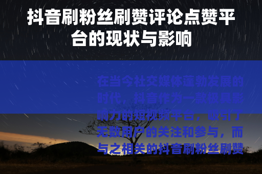 在当今社交媒体蓬勃发展的时代,抖音作为一款极具影响力的短视频平台,吸引了无数用户的关注和参与,而与之相关的抖音刷粉丝刷赞评论点赞平台也随之兴起,成为了一个备受瞩目的现象。