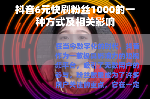 在当今数字化的时代,抖音作为一款极具影响力的短视频平台,吸引了无数用户的参与,粉丝数量成为了许多用户关注的重点,它在一定程度上代表着账号的热度和影响力,而市场上也出现了诸如抖音6元快刷粉丝1000这样的服务。