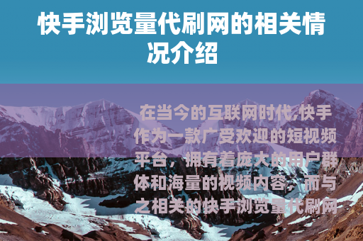 在当今的互联网时代,快手作为一款广受欢迎的短视频平台,拥有着庞大的用户群体和海量的视频内容,而与之相关的快手浏览量代刷网也逐渐进入了人们的视野。