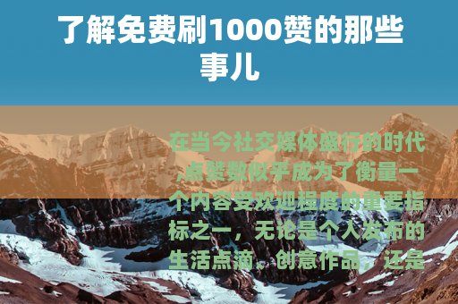 在当今社交媒体盛行的时代,点赞数似乎成为了衡量一个内容受欢迎程度的重要指标之一,无论是个人发布的生活点滴、创意作品,还是企业的宣传推广,都希望能获得大量的点赞,以提高曝光度和影响力,而“免费刷1000赞”这样的话题,也因此备受关注。
