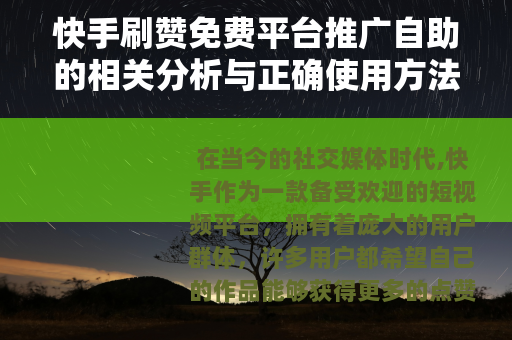 在当今的社交媒体时代,快手作为一款备受欢迎的短视频平台,拥有着庞大的用户群体,许多用户都希望自己的作品能够获得更多的点赞,从而提高曝光度和影响力,在这样的背景下,快手刷赞免费平台推广自助应运而生。